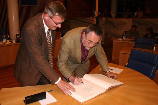 Hellmut Dinkelaker (rechts) und Oberbürgermeister Michael Beck. Photo: Stadt Tuttlingen